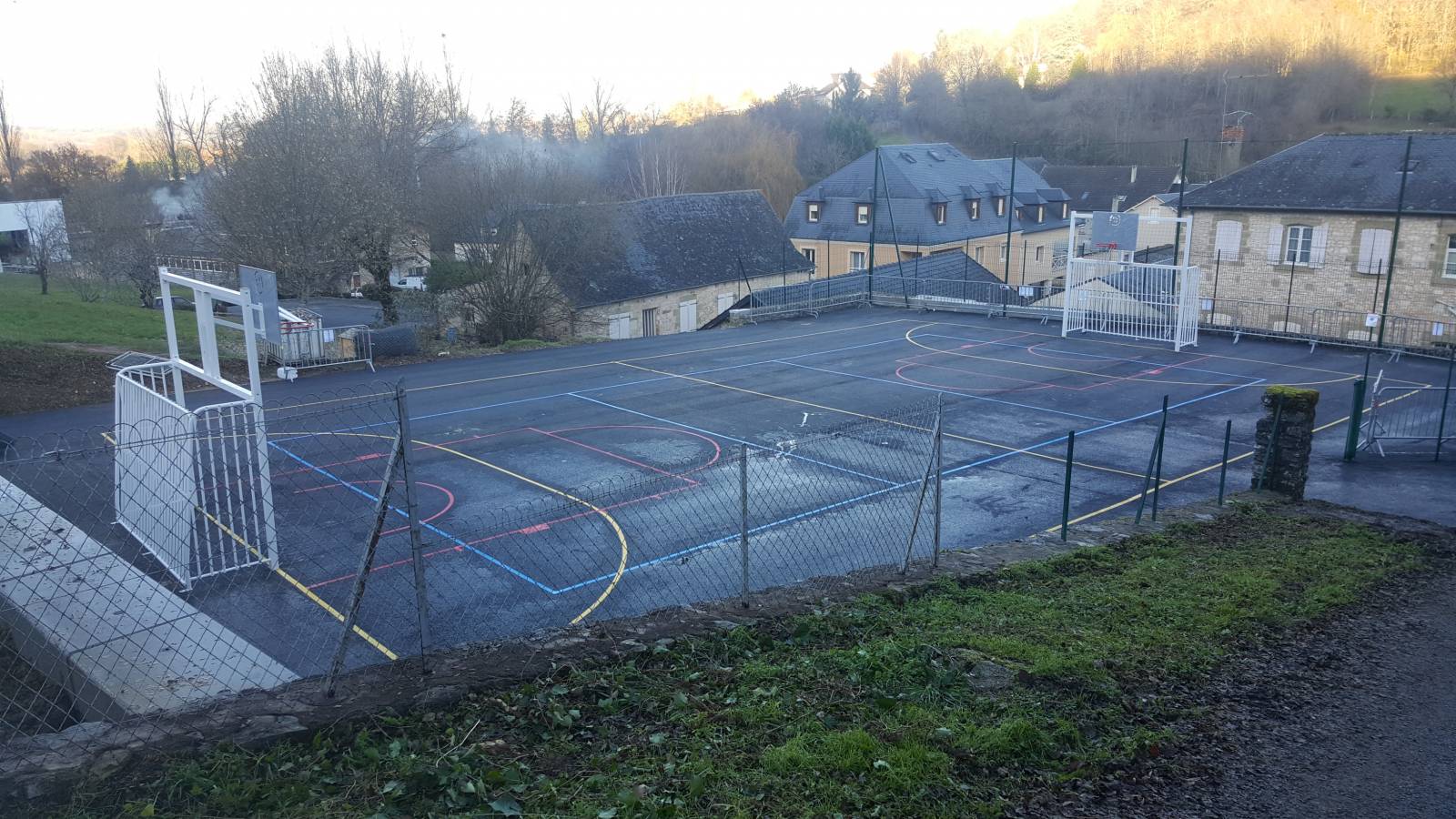 Marquage au sol d'un plateau sportif extérieur à Bordeaux en Gironde